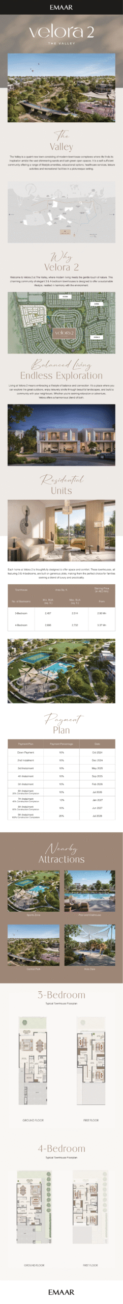 Welcome to Velora 2 at The Valley, where modern living meets the gentle touch of nature. This charming community of elegant 3 & 4-bedroom townhouses is designed to offer a sustainable Lifestyle, nestled in harmony with the environment.